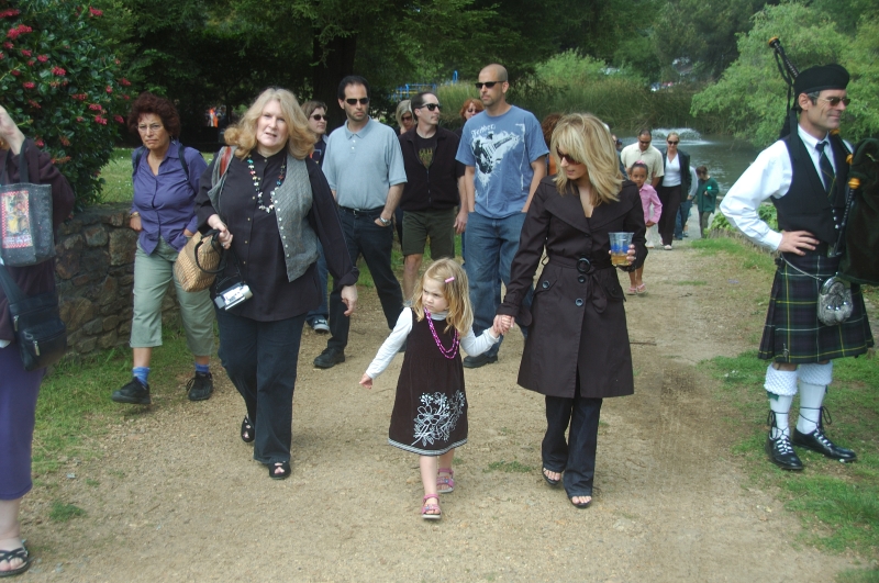 Diane Harrington, Grace, Adrianne, and a multitude march to the bench for the dedication ceremony.
