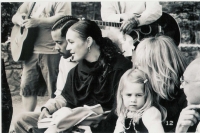 Adrianne and Grace (the truly amazing Grace!) listen on Daddy's bench.